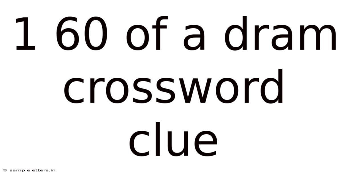 Crossword clues often blend definition and wordplay. In “1 60 of a dram”, the definition is embedded within the numerical expression, while the wordplay lies in the phrase “of a dram”. Let’s break it down: