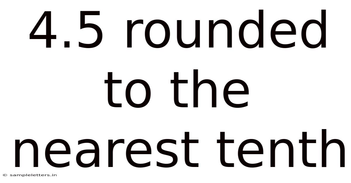 Rounding numbers is a fundamental mathematical skill used in everyday life, from calculating tips to estimating distances. In real terms, when working with decimals, rounding to the nearest tenth simplifies numbers while maintaining their approximate value. One common example is rounding 4.5 to the nearest tenth. So at first glance, this might seem straightforward, but the process involves understanding place value, rules for rounding, and even nuances like how different conventions handle midway values. Let’s break this down step by step.