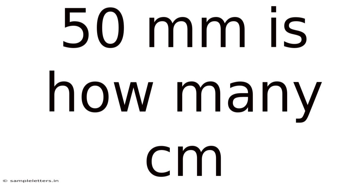 When you encounter the term 50 mm, it typically refers to a specific measurement in millimeters. On the flip side, to fully comprehend its value, it is necessary to convert it into centimeters. Worth adding: the conversion is simple: 1 centimeter equals 10 millimeters. Which means, to find the equivalent of 50 mm in centimeters, you simply multiply the number of millimeters by 10. This straightforward calculation yields 500 centimeters Simple, but easy to overlook..