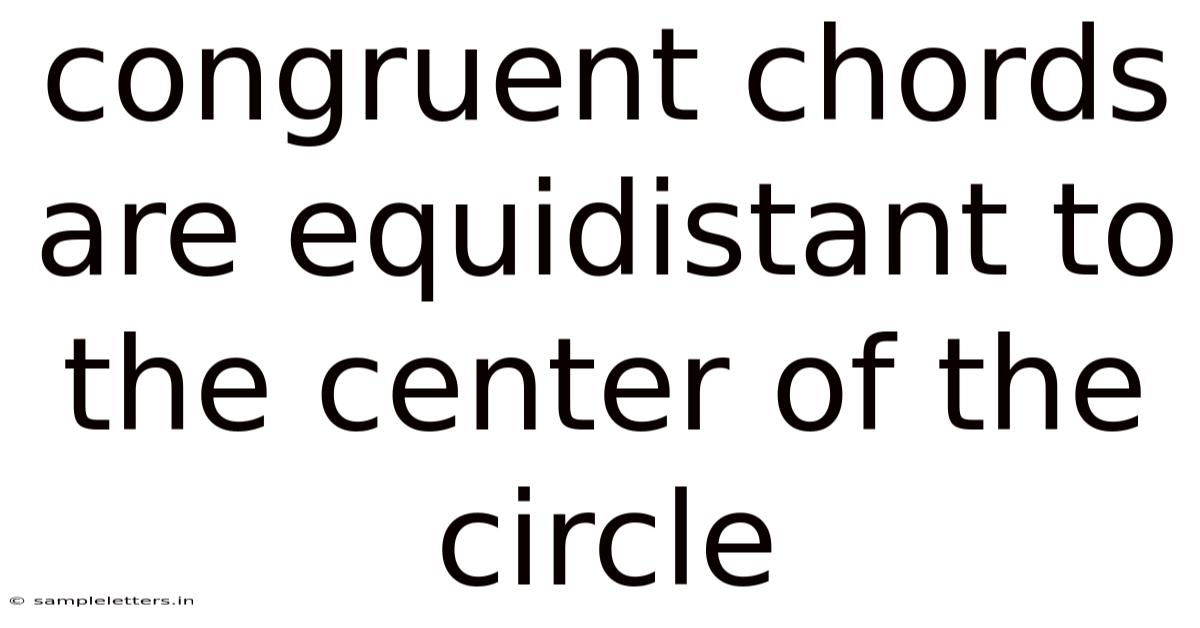 In the worldof geometry, congruent chords are equidistant to the center of the circle is a fundamental property that connects chord length with radial distance. That said, this article explains why chords of equal length lie at the same distance from the circle’s center, walks through the proof step by step, and explores practical uses that reinforce the concept. By the end, readers will understand the theorem, be able to apply it in problem‑solving, and feel confident using it in both academic and real‑world contexts.