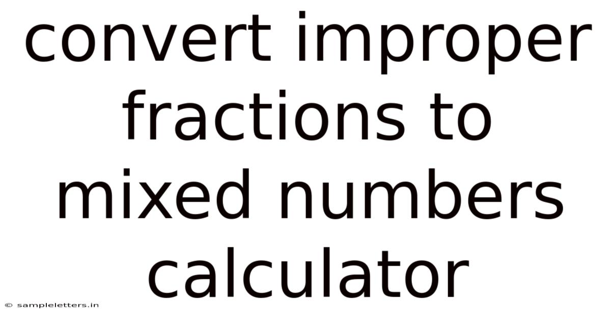 Understanding how to convert improper fractions to mixed numbers is a fundamental skill in mathematics that students and professionals alike need to master. Whether you're working on homework, solving real-world problems, or simply refreshing your math skills, having the right tools can make this process much simpler. An improper fractions to mixed numbers calculator serves as an excellent resource for quick and accurate conversions, helping you save time while ensuring accuracy in your mathematical work Still holds up..