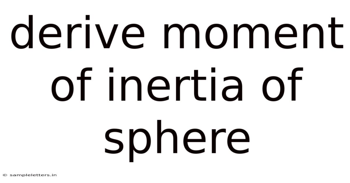 Conclusion Deriving the moment of inertia for a solid sphere is a quintessential example of applying calculus to solve a fundamental problem in physics. The process, involving integration over a symmetric volume, yields the elegant and widely applicable result I = (2/5) m R². This formula encapsulates the relationship between a sphere's mass, size, and its resistance to rotational acceleration about a central axis. Mastering this derivation not only provides a deep understanding of rotational dynamics but also serves as a powerful model for tackling similar problems involving other symmetric bodies. The ability to quantify rotational inertia is indispensable across fields,