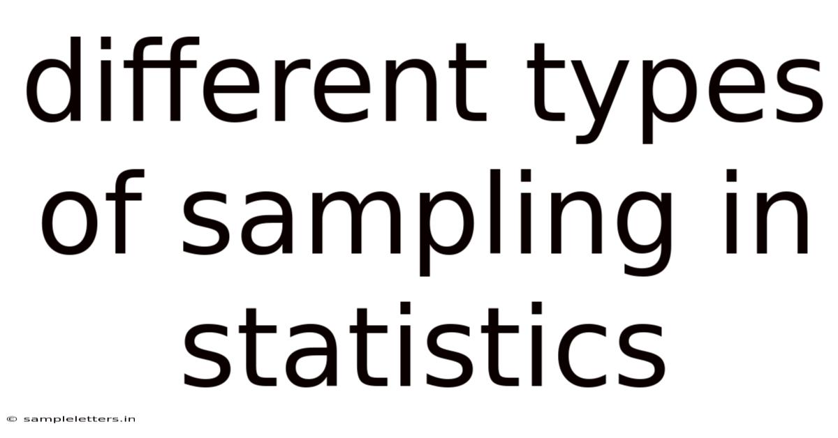 Sampling is the cornerstone of statistical inference, allowing researchers to draw conclusions about a population without measuring every single element. In real terms, by selecting a subset of observations—the sample—and analyzing its characteristics, we can estimate parameters such as means, proportions, and variances for the whole population. That said, not all sampling methods are created equal. The choice of technique influences the accuracy, precision, cost, and ethical feasibility of a study. This article explores the different types of sampling in statistics, explains when each method is appropriate, and highlights the underlying assumptions that must be met for valid inference.