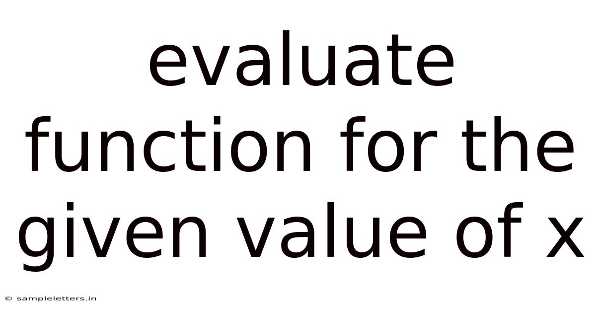 Evaluating a function for a given value of x is a fundamental concept in mathematics, particularly in algebra and calculus. But functions are essential tools for modeling real-world phenomena, and understanding how to evaluate them allows you to predict outcomes based on input values. This skill is crucial for fields such as engineering, physics, economics, and computer science, where mathematical models are used to analyze and solve complex problems Not complicated — just consistent..