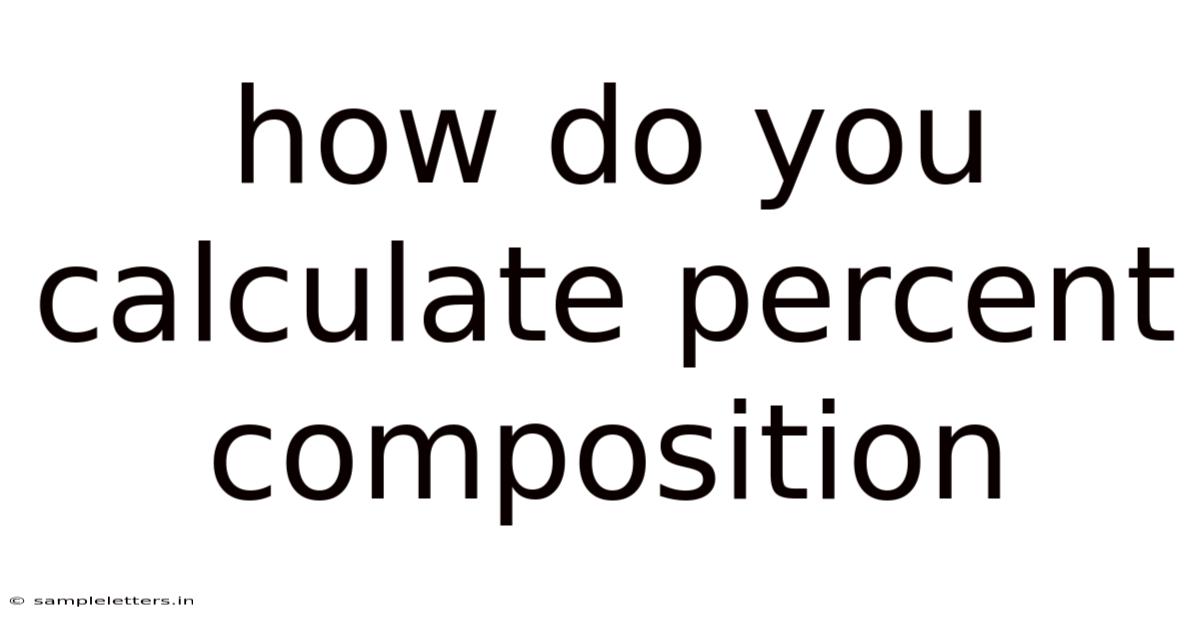 Understanding percent composition is essential for anyone working with chemical formulas, nutrition labels, or material specifications. Still, percent composition tells you the relative mass of each element in a compound, expressed as a percentage of the total mass. By mastering the calculation, you can quickly verify empirical formulas, compare purity of samples, and interpret data from laboratory analyses. This article walks you through the step‑by‑step method, the underlying scientific reasoning, common pitfalls, and real‑world applications, ensuring you can calculate percent composition confidently in any context Simple, but easy to overlook. Which is the point..