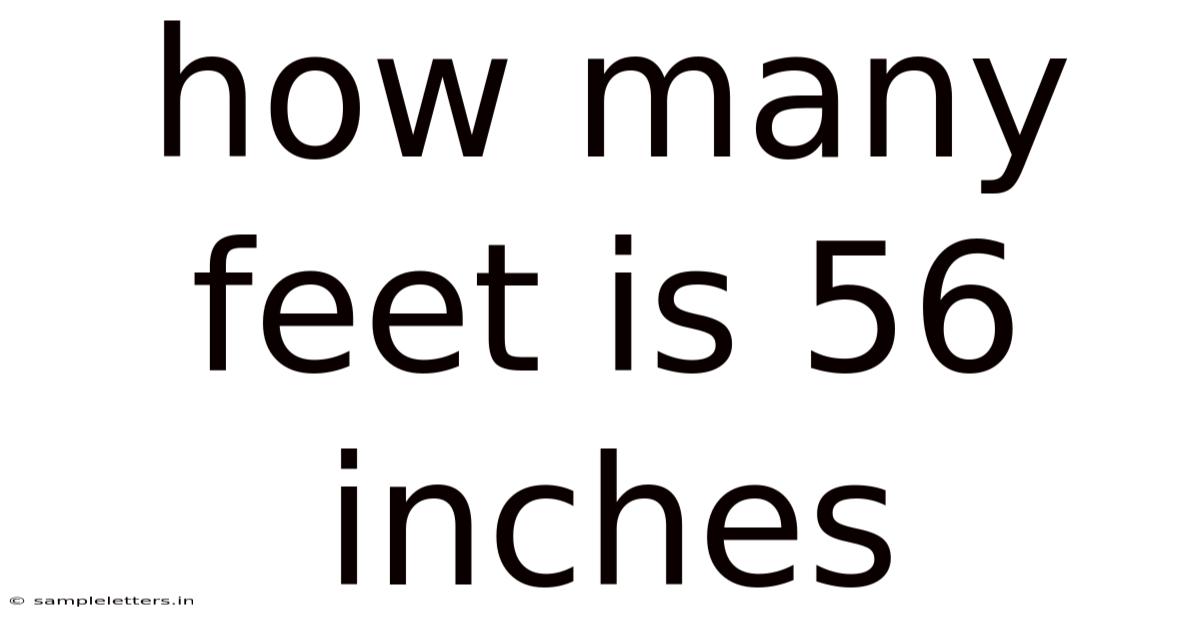 Conclusion Converting 56 inches to feet results in 4 feet and 8 inches. This conversion is a fundamental skill within the imperial system, enabling clearer communication and more intuitive understanding of length measurements. Whether you're tackling a DIY project, reading a blueprint, or simply trying to visualize a dimension, knowing how to move easily between inches and feet is invaluable. Remember the simple rule: divide the inches by 12 to find the equivalent in feet, and the remainder gives you the extra inches. Mastering this basic conversion empowers you to handle measurements confidently in countless everyday situations. Beyond this specific example, understanding the underlying principles allows for accurate calculations with multiple measurements and appreciation for the broader context of measurement systems, both imperial and metric.