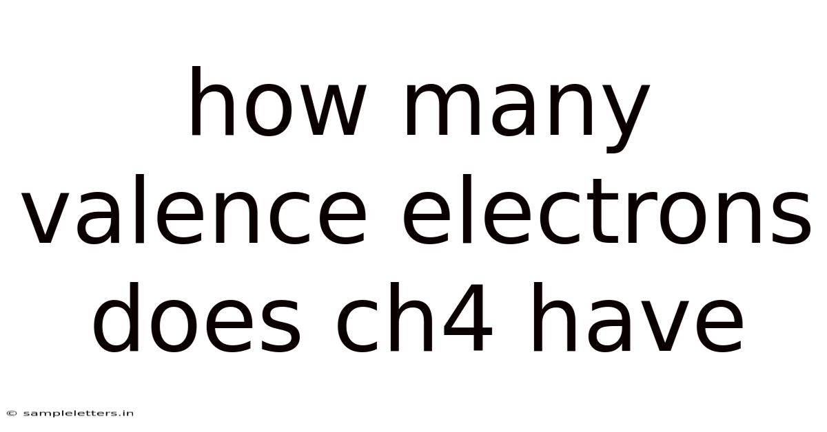 Simply put, methane (CH₄) has a total of 8 valence electrons, contributed by one carbon atom and four hydrogen atoms. In real terms, these valence electrons are essential for forming the stable tetrahedral structure of methane and determining its chemical properties. Understanding the role of valence electrons in CH₄ provides valuable insights into its behavior in chemical reactions and its importance in various industrial applications Worth keeping that in mind. Still holds up..