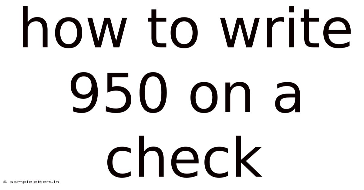 Understanding how to write 950 on a check is a task that many people encounter when dealing with financial transactions. On top of that, whether you are a student, a business owner, or someone managing personal finances, knowing how to accurately fill out a check can save you time and prevent errors. Think about it: in this article, we will explore the importance of writing 950 on a check, the steps involved, and some tips to ensure accuracy. By the end of this guide, you’ll have a clear understanding of how to handle this common requirement with confidence.