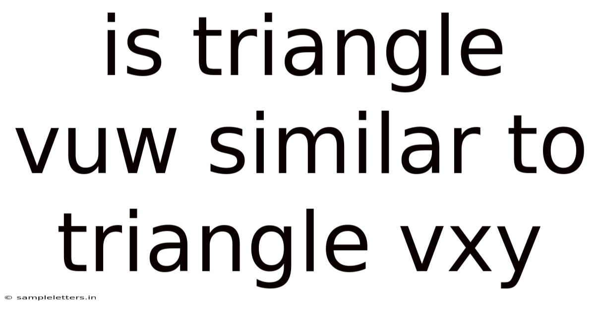 Determining whether triangle VUW is similar to triangle VXY involves checking if their corresponding angles are equal and if the ratios of their corresponding sides are proportional. By following the steps outlined in this article and understanding the scientific principles behind triangle similarity, you can accurately assess the similarity of any two triangles. This knowledge is not only essential for academic purposes but also has practical applications in various professional fields Still holds up..