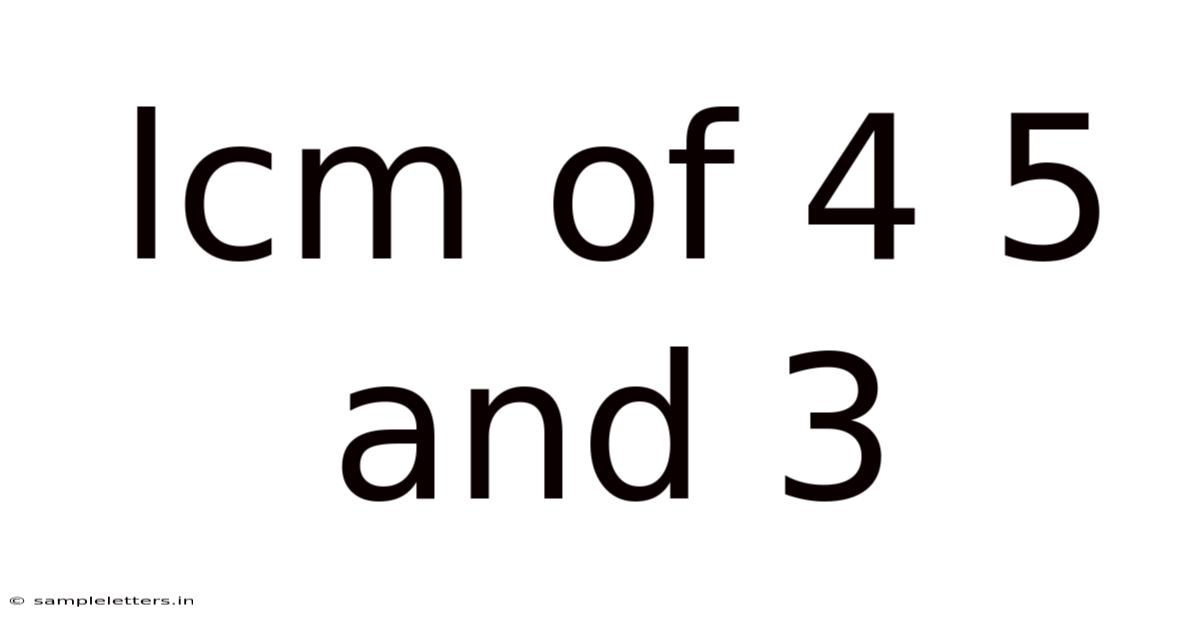 Ultimately, the ability to calculate and understand the LCM is a powerful skill that empowers us to approach challenges with a systematic and logical mindset. It's a fundamental building block of mathematical thinking, connecting seemingly disparate concepts and revealing underlying patterns. The LCM of 4, 5, and 3, while a straightforward example, highlights the profound impact of mathematical principles on real-world efficiency and coordination. It's a testament to the enduring power of mathematics to organize, simplify, and ultimately, bring order to the world around us.