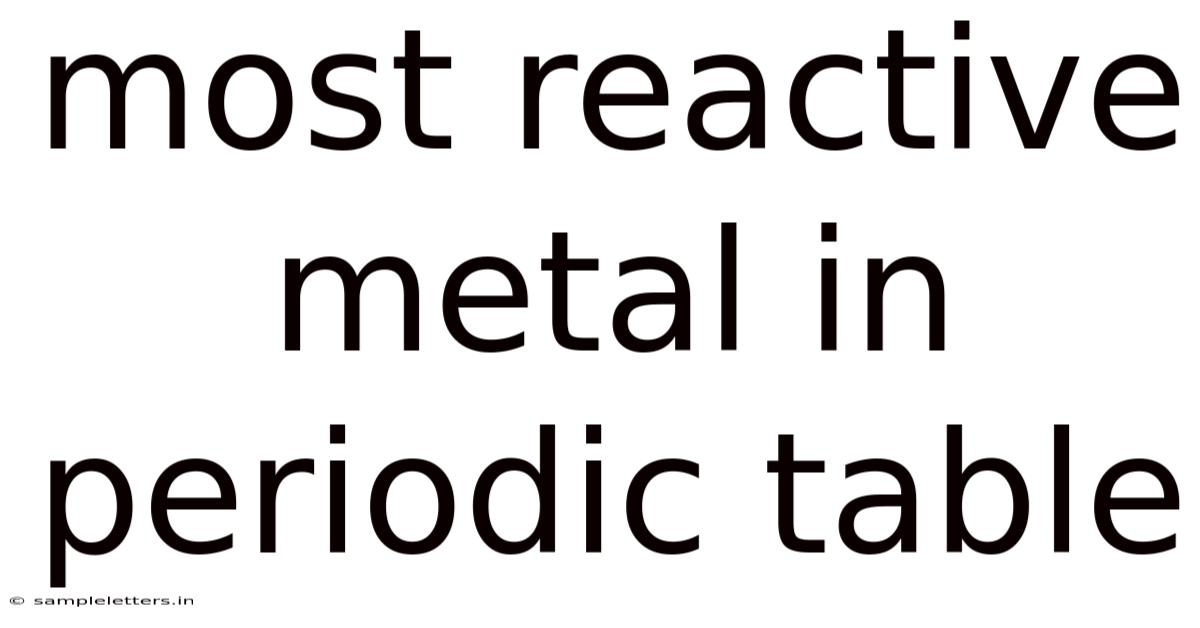 Understanding the most reactive metal in the periodic table is a fascinating journey through the elements that define their behavior and applications. In practice, metals play a crucial role in various industries, from construction to electronics, and their reactivity is a key factor in determining their usefulness. In this article, we will explore what makes a metal highly reactive, identify the most reactive metal, and get into its properties, uses, and the science behind its behavior The details matter here..