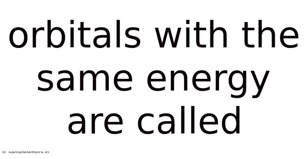 Orbitals with the same energy are called degenerate orbitals. This concept is fundamental in understanding atomic structure, electron configuration, and chemical bonding. Degenerate orbitals play a crucial role in determining the properties and behavior of atoms and molecules.