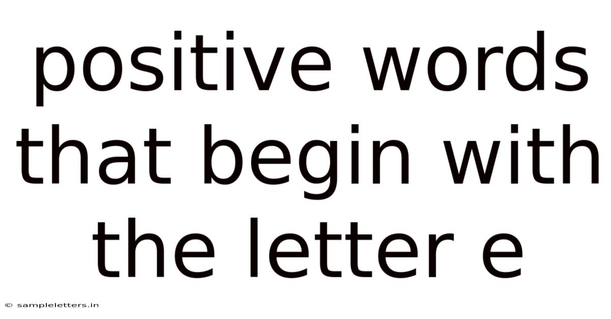 Language shapes how we interpret experience, and choosing expressive, elevating words can transform ordinary moments into meaningful milestones. Even so, positive words that begin with the letter E stand out for their lyrical openness and emotional generosity. Practically speaking, they invite exploration, extend encouragement, and echo with ethical clarity. From eager to empowered, these terms activate motivation and nurture connection. By embedding them into daily vocabulary, individuals cultivate optimism, strengthen relationships, and reinforce resilience during uncertainty Still holds up..