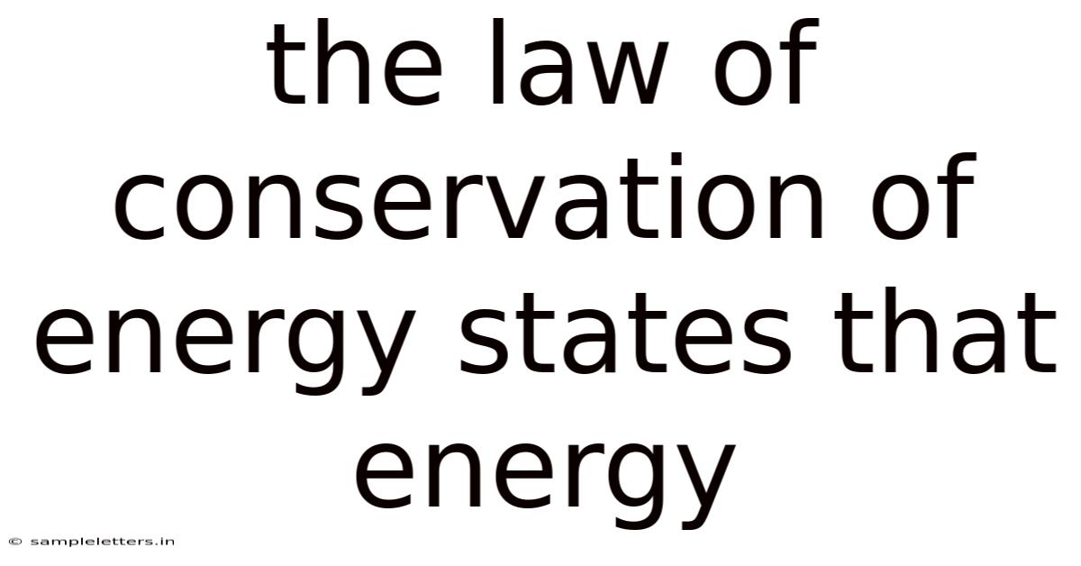 The Law Of Conservation Of Energy States That Energy