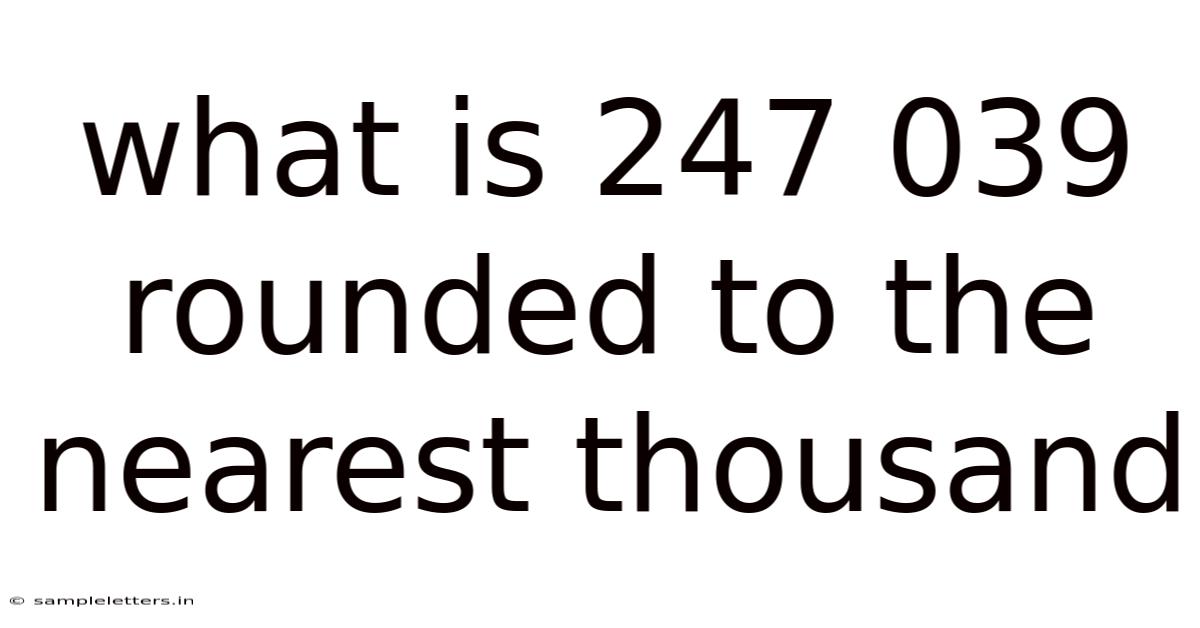 Rounding 247,039 to the nearest thousand is a straightforward process that yields 247,000. By understanding the underlying logic—examining the hundreds digit, applying the 5‑or‑more rule, and zeroing out lower place values—you can confidently round any number to the desired precision. This skill is invaluable across disciplines, from finance to data science, and helps transform raw numbers into clear, actionable insights Nothing fancy..