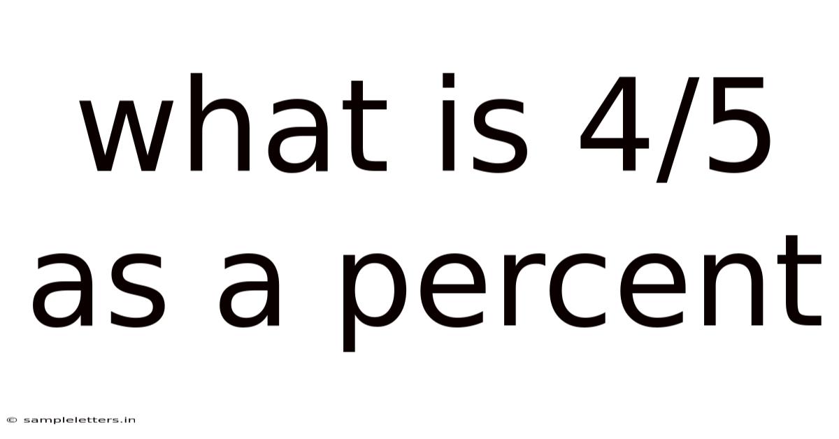 Converting the fraction 4/5 into a percentage is a fundamental math skill that unlocks a clearer understanding of proportions in everyday life. Think about it: this conversion is more than just a numerical exercise; it’s a way to interpret data, understand statistics, and make informed decisions, from calculating discounts to interpreting survey results. Think about it: this means that if you have a whole divided into five equal parts, having four of those parts represents 80 percent of the entire whole. At its core, 4/5 as a percent is 80%. Mastering this simple conversion builds a foundation for tackling more complex mathematical concepts with confidence Simple, but easy to overlook..