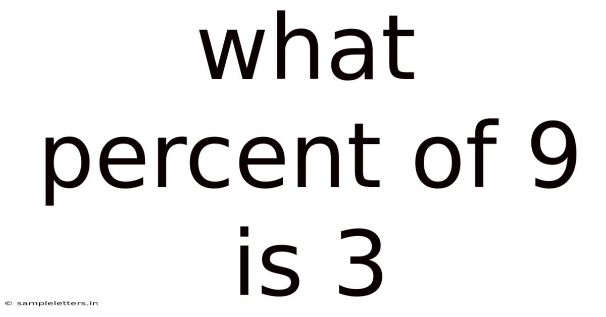 When someone asks "what percent of 9 is 3," the answer is 33.33% (or precisely 33.333...%). Day to day, this seemingly simple question actually opens the door to understanding one of the most fundamental concepts in mathematics—percentages. Whether you're a student learning basic math, a parent helping with homework, or simply someone wanting to refresh their knowledge, this guide will walk you through everything you need to know about calculating what percent one number is of another It's one of those things that adds up..