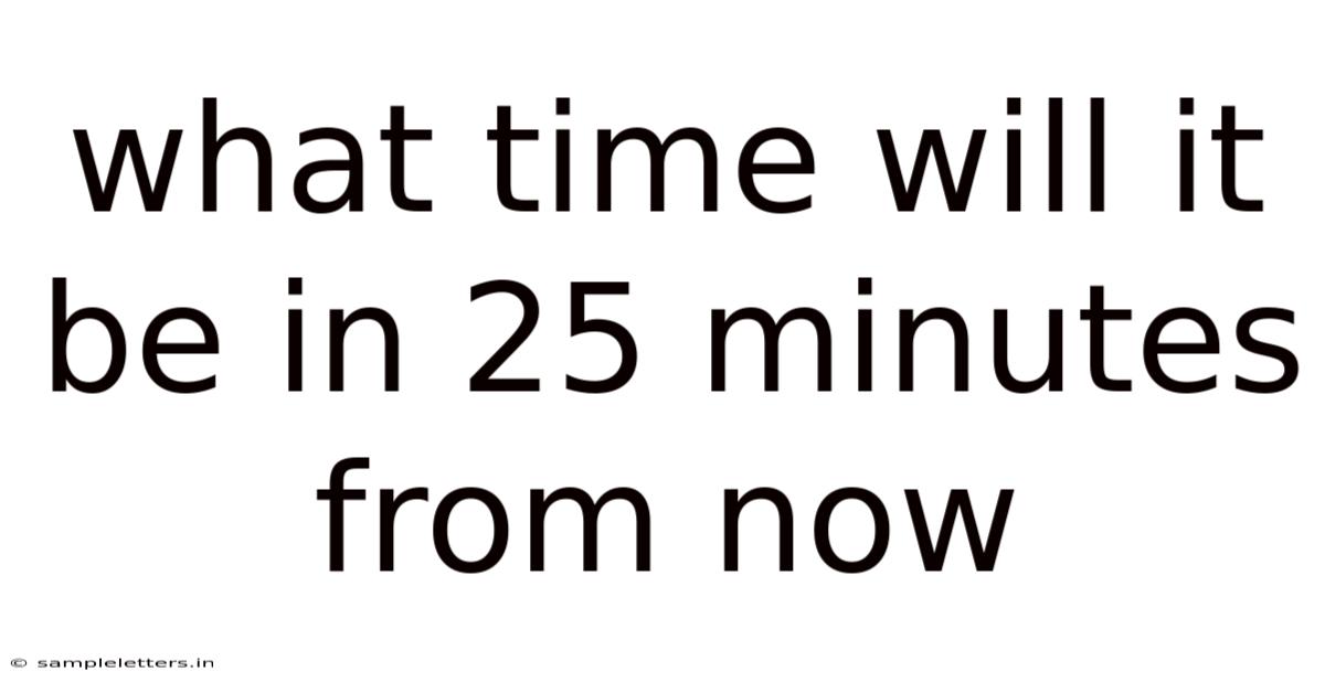 Ever found yourself glancing at the clock and wondering, “What time will it be in 25 minutes?Think about it: ” Whether you’re planning a quick coffee break, coordinating a virtual meeting across time zones, or simply trying to keep a schedule on track, calculating a future time is a skill that pops up more often than you might think. Day to day, in this article we’ll break down the simple math behind adding 25 minutes to the current time, explore common pitfalls, and provide handy tools and tricks you can use on the go. By the end, you’ll be able to answer the question “what time will it be in 25 minutes from now?” with confidence—no calculator required Not complicated — just consistent..