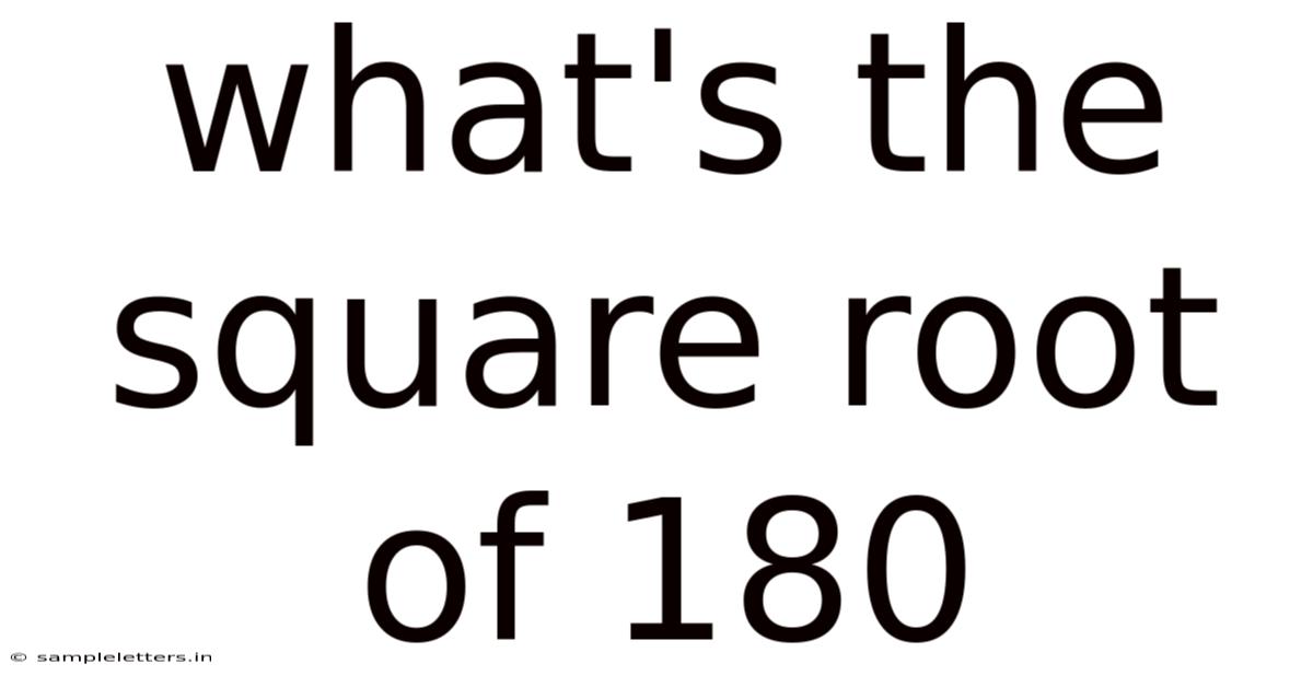 The question “what’s the square root of 180?” may look simple at first glance, but it opens a gateway to a host of mathematical concepts—prime factorisation, simplifying radicals, decimal approximations, and even real‑world applications. Understanding how to find √180 not only gives you a numeric answer but also strengthens your number‑sense, improves problem‑solving skills, and prepares you for more advanced topics such as algebraic expressions and geometry. In this article we will walk through the exact value, the simplified radical form, the decimal approximation, and the contexts where this number appears, all while keeping the explanation clear for beginners and useful for seasoned learners Not complicated — just consistent..