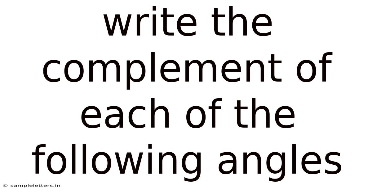 Conclusion Mastering the concept of the complement of an angle is a vital step in your geometric journey. It's a simple calculation based on the fundamental right angle, yet it underpins countless applications in mathematics, science, and engineering. By understanding the steps to find the complement and recognizing its properties, you equip yourself with a powerful tool for analyzing spatial relationships and solving complex problems. Remember the core formula: Complement = 90° - Angle. Practice applying it to various angles and expressions. As you become more comfortable, you'll find this concept easily integrates into your broader understanding of geometry and trigonometry, opening doors to more advanced topics. Keep exploring, keep calculating, and the elegance of geometric relationships will continue to unfold.